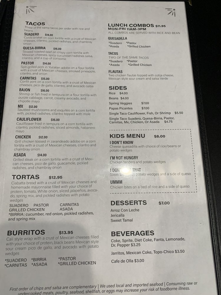 La Tia Taqueria & Cantina Menu (Update 2025)
